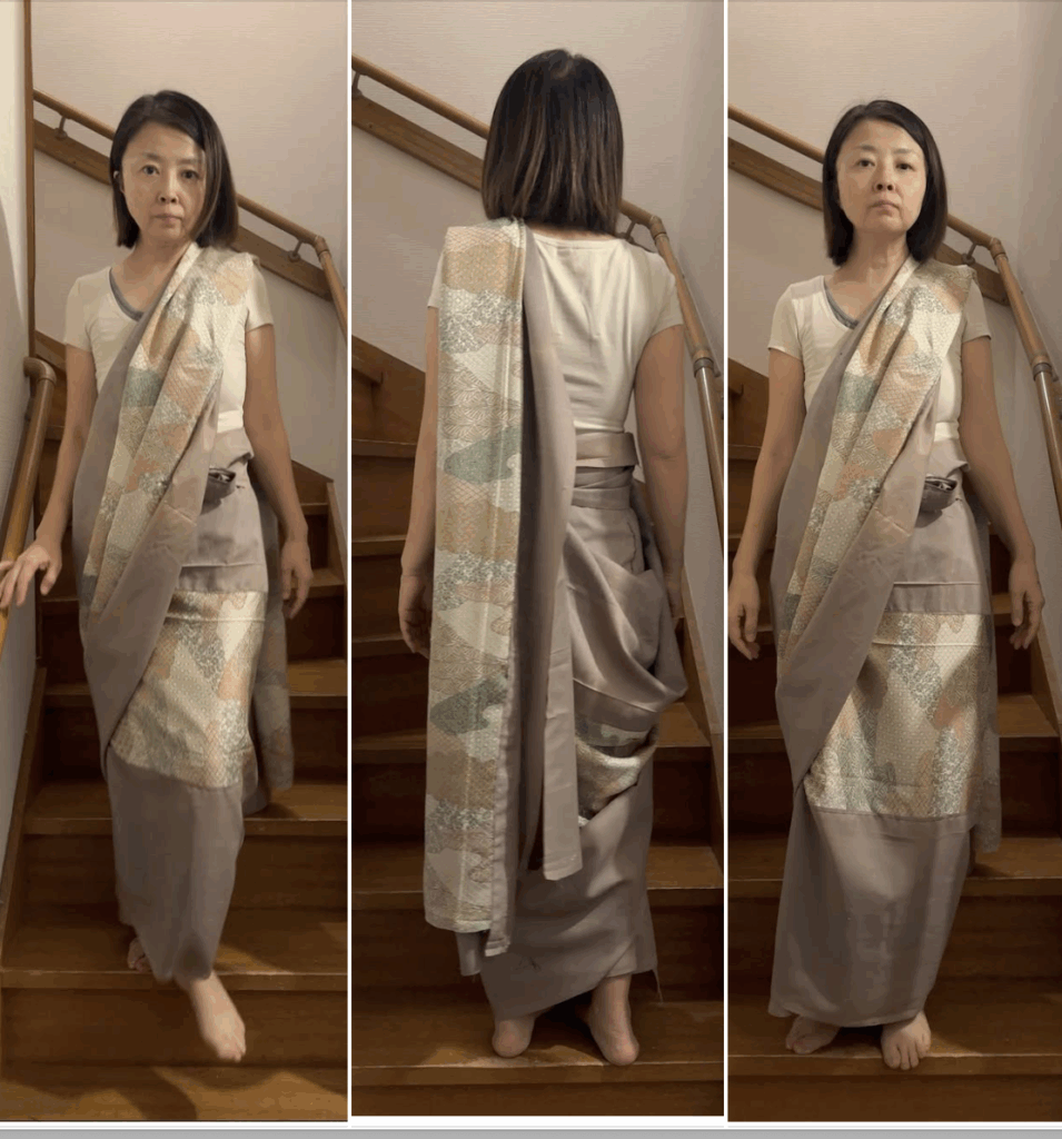 着物布で作ったサリー、年末年始のちょっとしたパーティにもいけちゃいそう。